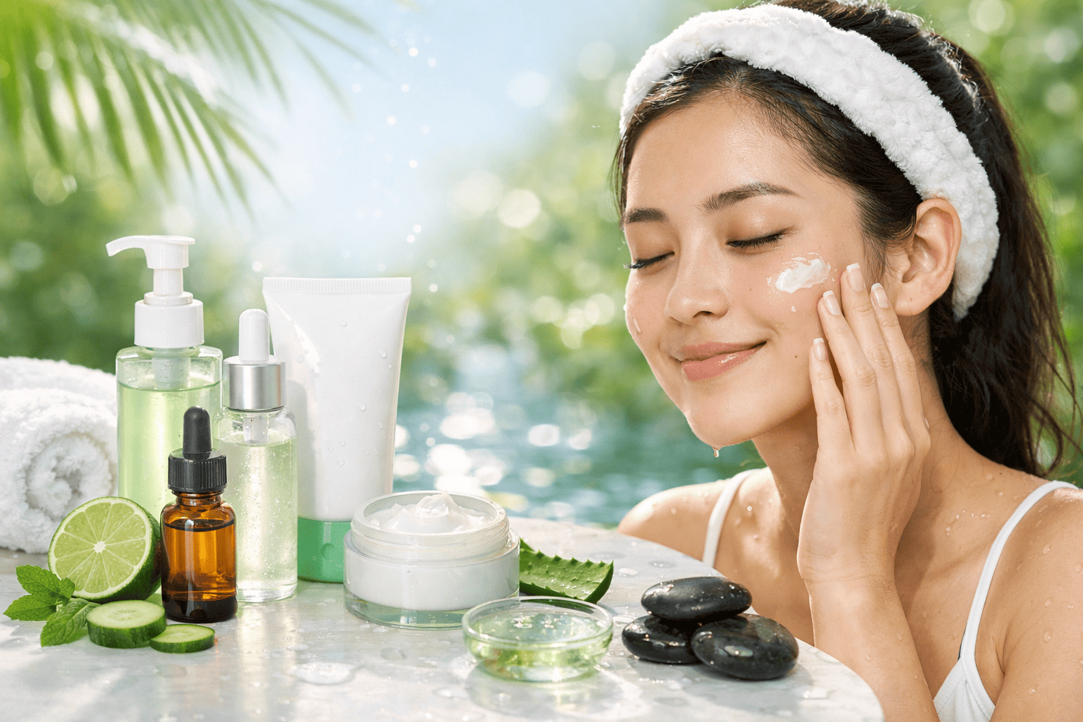 Chăm sóc da dầu mụn trong mùa hè nóng ẩm với routine buổi tối
